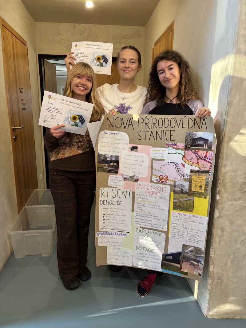 Víte, co je sekvestrace, zero waste, dekarbonizace, carbon footprint nebo albedo? Studentky Lucie Plíhalová ze sexty B, Tereza Šavlová a Tereza Vrchlavská, obě ze 4. A, ano. V konkurenci dalších 9 týmů z celého plzeňského kraje zvítězily a postupují do národního kola.