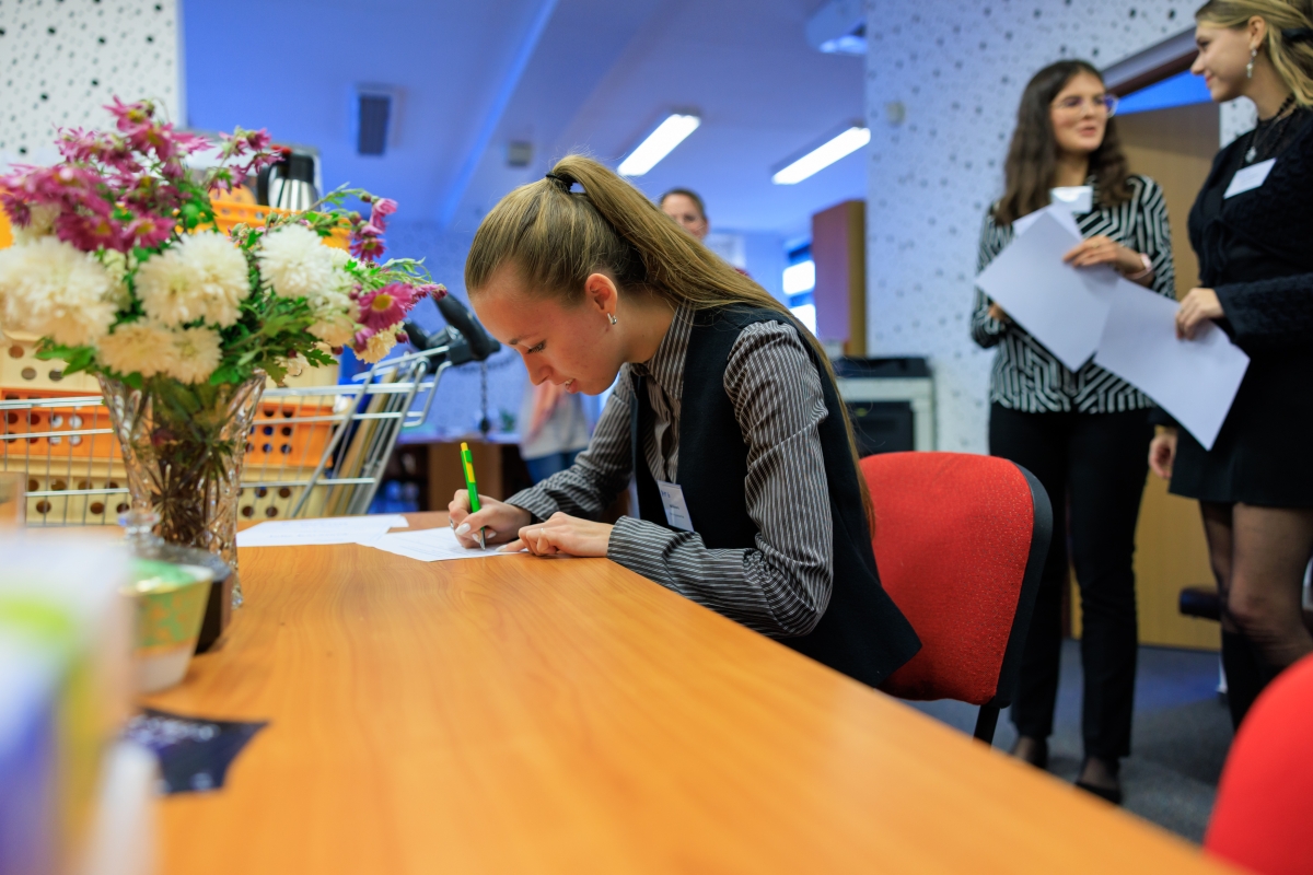 Studentka septimy B Julie Karasová dosáhla skvělého úspěchu, když 4. listopadu 2025 zvítězila v sekci gymnázií – anglický jazyk na Konferenci studentských odborných prezentací v cizích jazycích. Soutěž každoročně pořádá Ústav jazykové přípravy Západočeské univerzity v Plzni v areálu Bory. Julie obstála v silné konkurenci mnoha talentovaných účastníků a svou prezentací zaujala odbornou porotu i publikum.