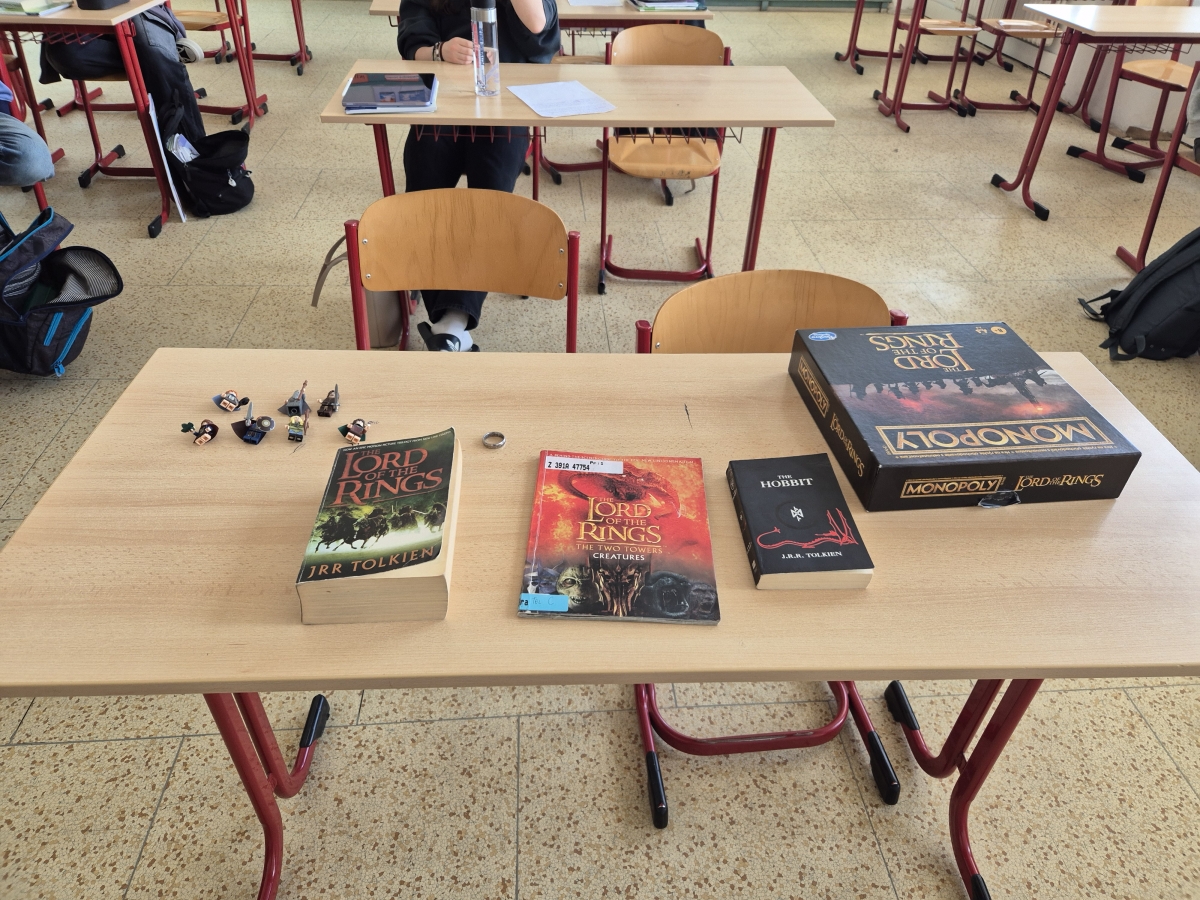 Den 25. 3. 2026 je, obzvláště mezi milovníky fantasy příběhů, znám jako Den J. R. R. Tolkiena. Proto jsme se se studenty z kvint domluvili, že se tomuto spisovateli a jeho knihám budeme věnovat v následujících hodinách anglického jazyka. Žáci byli stručně seznámeni se životem J. R. R. Tolkiena, který je znám jako otec literárního žánru fantasy.