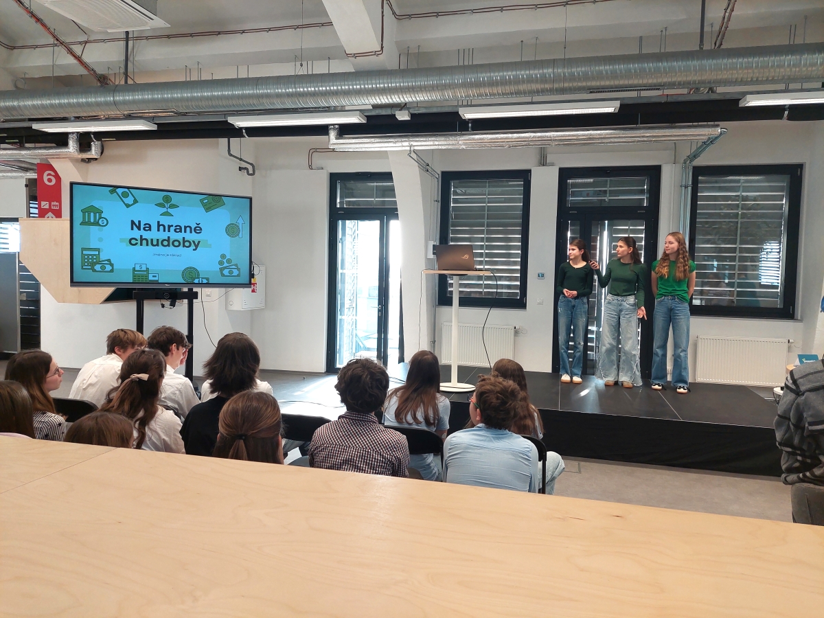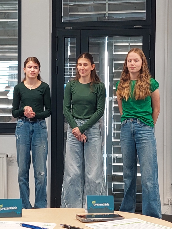 Téma soutěžního týmu „ChAAos" v kategorii SŠ bylo 1:1. Soutěžící Adéla Votrubová a Anna Rohanová (obě ze sexty B) s vtipem a nadhledem ukázaly svůj pohled na (ne)rovnost muže a ženy na pozadí různých vztahových peripetií a odlišný přístup obou pohlaví k řešení různých situací. Pobavily porotu i ostatní diváky a získaly 2. místo. Tým „Jméno je základ“ (kategorie ZŠ) ve složení Andrea Vápeníková, Anastázie Lišková a Magdalena Bulíčková (všechny z tercie A) si zvolily téma Na hraně a v rámci něj se zaměřily na chudobu z mnoha úhlů pohledu. Svou přirozeností, týmovou spoluprací, grafickým zpracováním své prezentace, rychlými reakcemi na dotazy a v neposlední řadě odvahou se do takovéhoto tématu pustit porotu zaujaly natolik, že získaly příčku nejvyšší a tím i postup do celostátního Grandfinále, které se koná v květnu v Mladé Boleslavi na Vysoké škole Škoda Auto. Čeká nás další výzva, protože témata budou nová a konkurence ještě větší než v krajském kole. Tak nám držte palce.