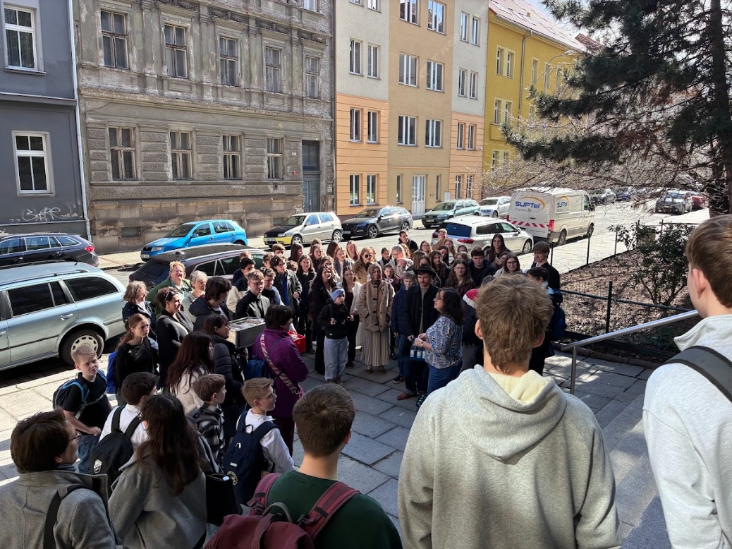 Původní plán pouhé návštěvy opery se proměnil v krásný společný den plný zážitků. Téměř 70 žáků, rodičů a učitelů z partnerské školy v Oberviechtach si prohlédlo naši školu s průvodci ze septimy B, objevilo historické kouty Plzně, naučilo se pár českých slov a den zakončilo v restauraci s typickou českou kuchyní.