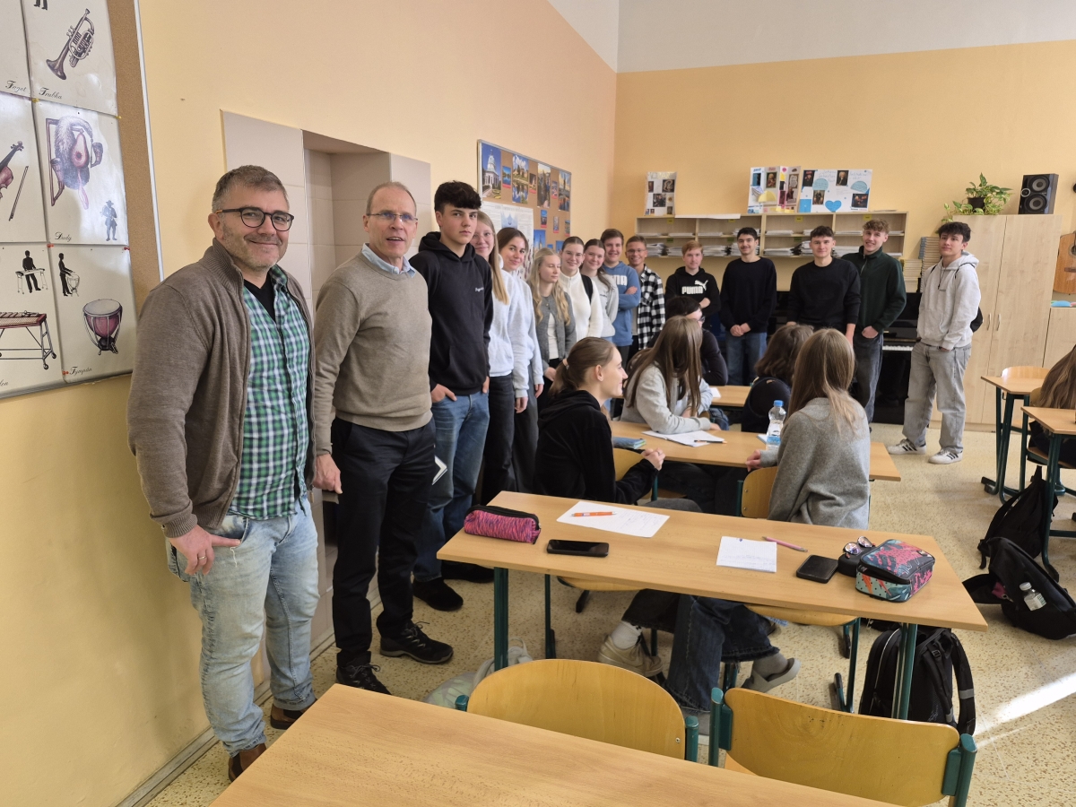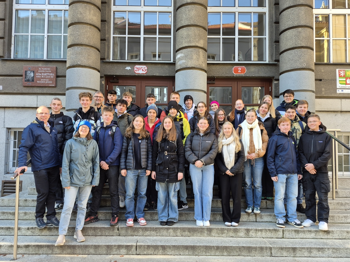 Ve středu 19. listopadu 2025 se v Plzni uskutečnilo první vydařené setkání žáků Masarykova gymnázia (MG) s žáky naší nové partnerské školy Ortenburg-Gymnasium Oberviechtach (OGO). Program jednodenní návštěvy byl připraven tak, aby hostům co nejlépe představil naši školu, výuku i město Plzeň a zároveň umožnil navázání prvních kontaktů mezi žáky obou škol v rámci našeho partnerství.