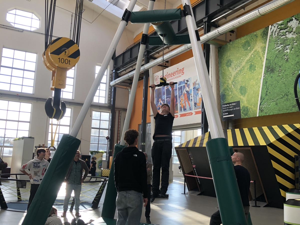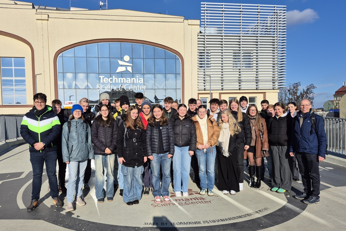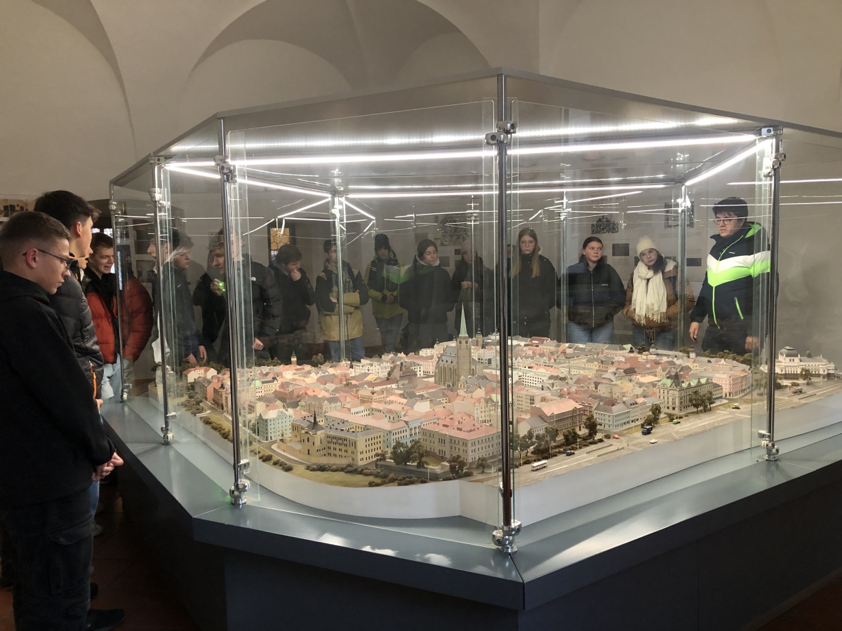 Po skončení dopolední výuky zašli naši hosté společně s žáky kvinty B na oběd do školní jídelny a následně jsme se přesunuli do Techmanie, kde si všichni mohli vyzkoušet interaktivní expozice a experimenty a zároveň tím poznat, jak důležitou roli v Plzni hraje rozvoj techniky a průmyslu. Na závěr dne jsme ještě krátce prošli centrum Plzně, prohlédli jsme si model historického centra v mázhausu radnice a navštívili jsme katedrálu sv. Bartoloměje. Návštěva proběhla v mimořádně příjemné a přátelské atmosféře. Věříme, že setkání bylo přínosné nejen pro naše hosty, ale i pro naše žáky, kteří měli možnost procvičit si němčinu a navázat nové kontakty.