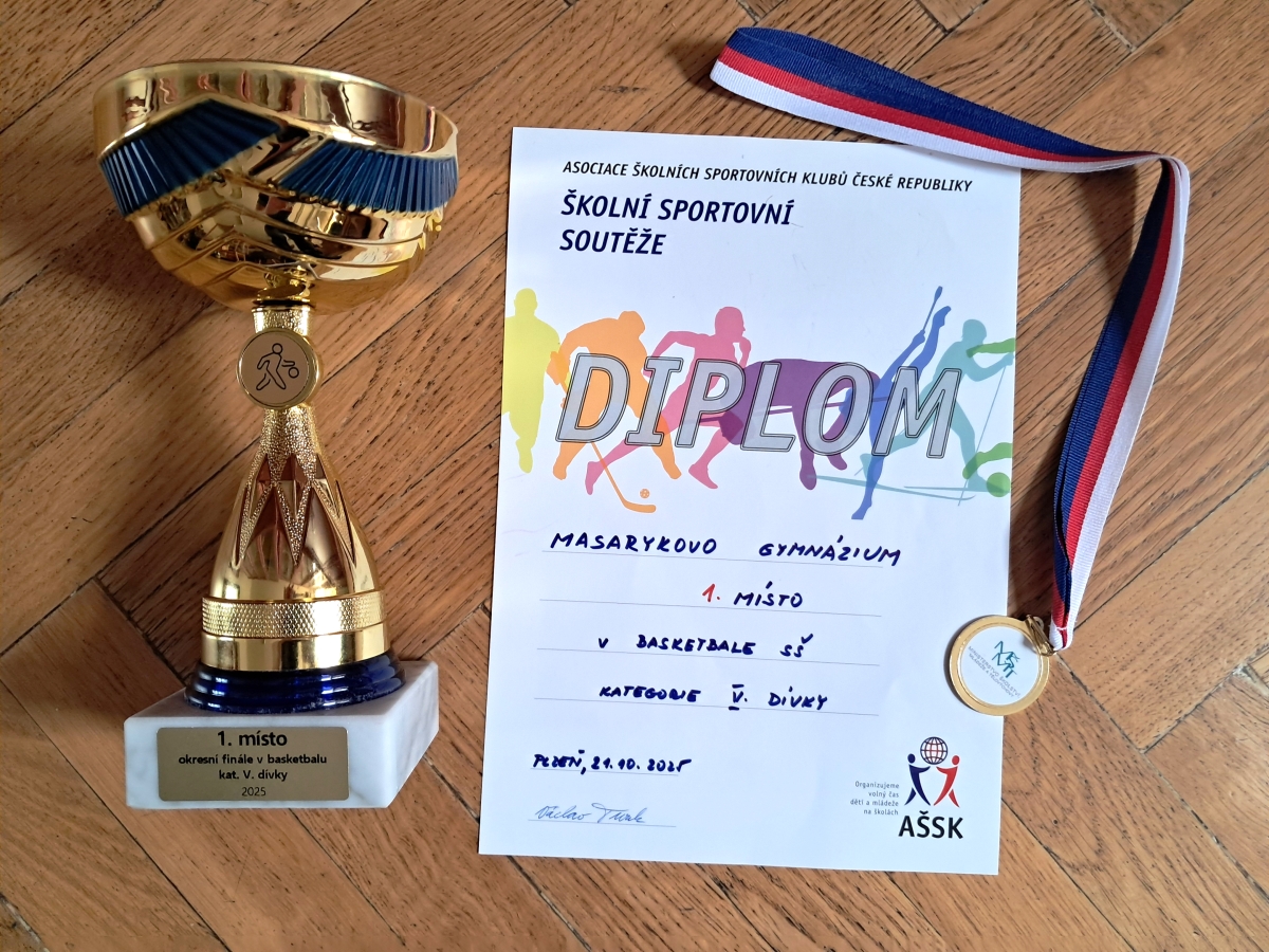 Dne 21. 10. 2025 se konalo okresní kolo v basketbalu dívek středních škol na plzeňské Lokomotivě a naše dívky tuto soutěž vyhrály. Děvčata porazila dalších 5 škol a zaslouženě si tedy odnáší zlatou medaili. Studentky postupují do krajského kola a budeme jim 4. 11. 2025 držet palce. Gratulujeme! Za MG nastoupily: Nella Bínová (4. A), Barbora Baxová (SPA), Tereza Houdková (SPB), Amélie Kadlečková (3. B), Anna Cvalínová (4. B), Nikol Šedivcová (2. C) a Alena Havlová (KIA).