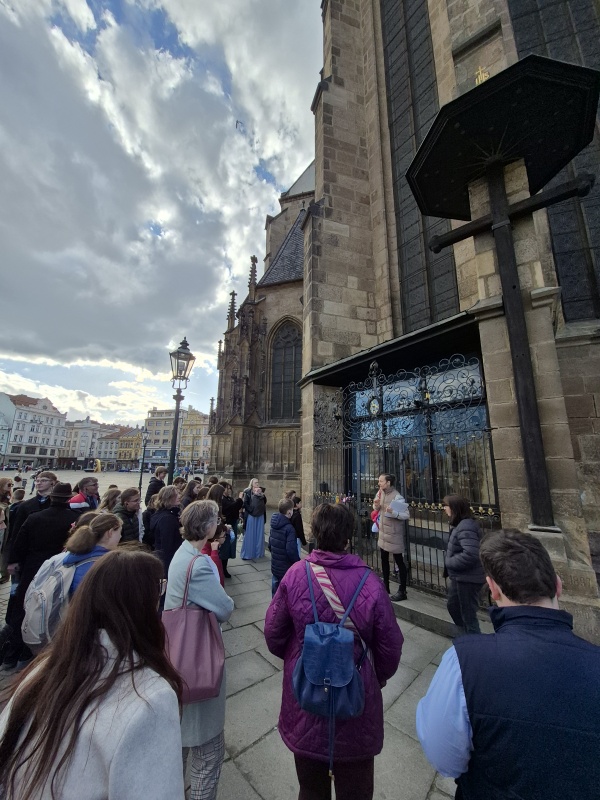 Původní plán pouhé návštěvy opery se proměnil v krásný společný den plný zážitků. Téměř 70 žáků, rodičů a učitelů z partnerské školy v Oberviechtach si prohlédlo naši školu s průvodci ze septimy B, objevilo historické kouty Plzně, naučilo se pár českých slov a den zakončilo v restauraci s typickou českou kuchyní.