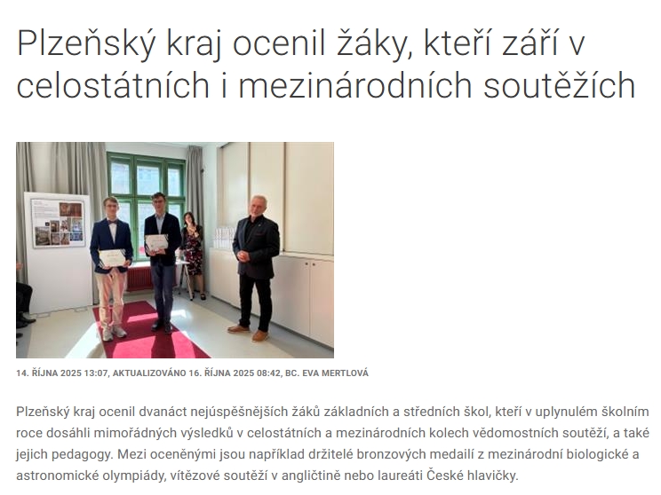 Eda Plic (bývalý student OKB) opět zabojoval a dosáhl mimořádného úspěchu v Mezinárodní olympiádě v astronomii a astrofyzice, jejíž 18. ročník se konal v idnické Bombaji (dnes Mumbaí) od 11. do 21. srpna. Přivezl si domů bronzovou medaili a navíc vyhrál doprovodnou soutěž o nejlepší vědecký plakát.