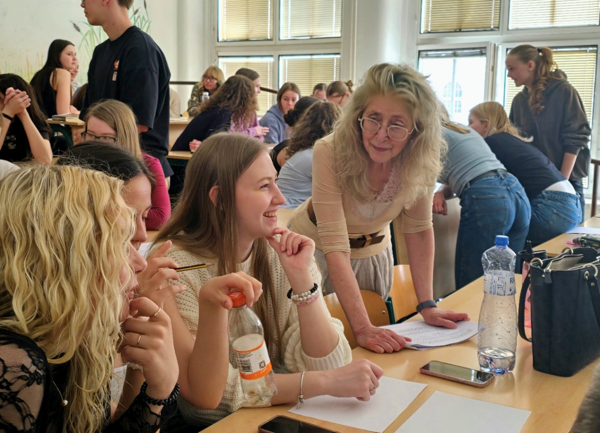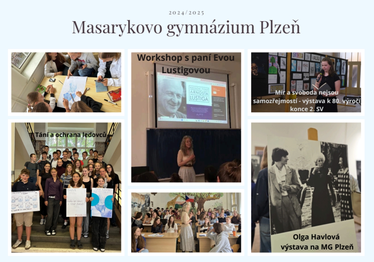 Pozvání školy přijala paní Eva Lustigová a dne 10. 4. 2025 přijela na Masarykovo gymnázium s připraveným workshopem pro žáky 3. A a septima A - článek Vzácné setkání s vzácným člověkem.